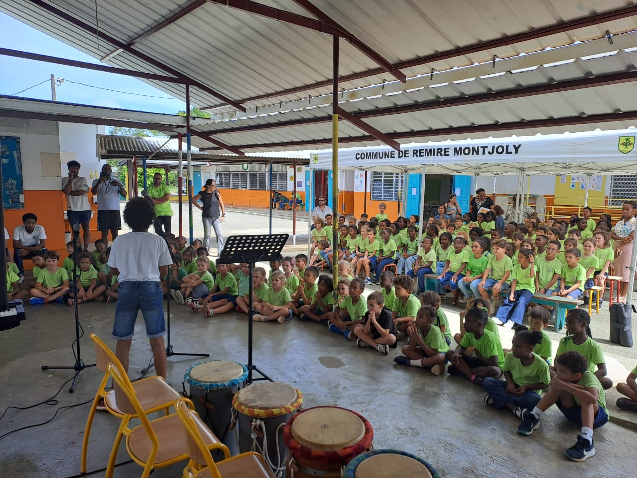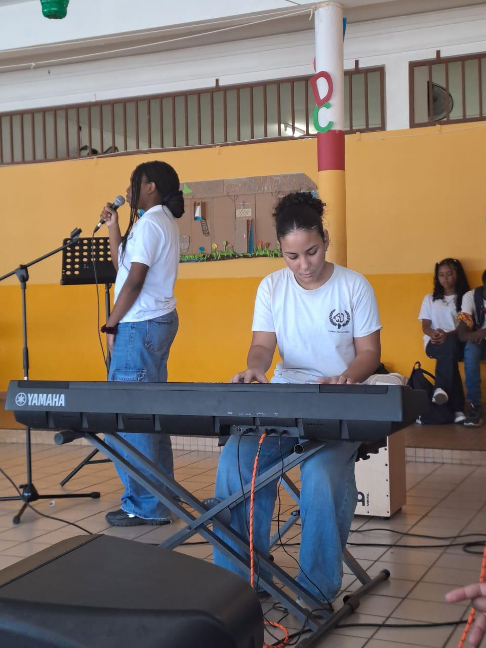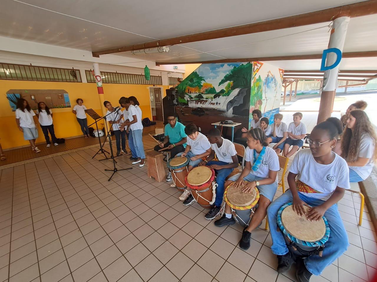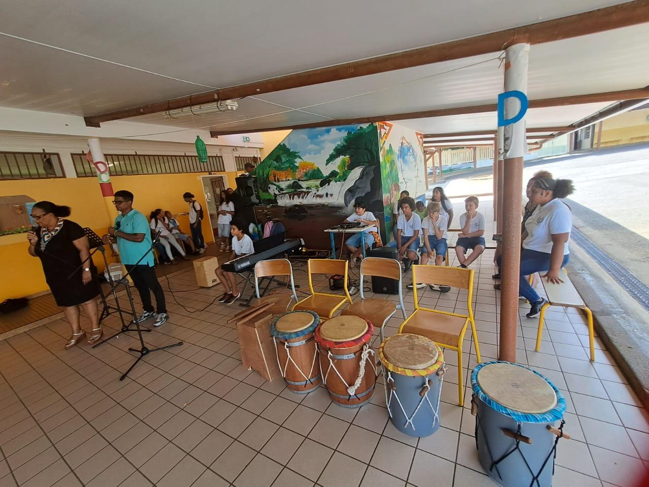 Accompagnés de leurs professeurs Mme Félicie , M.Gippet, ainsi que de Flora Medard, les musiciens du collège Auguste Dédé et les élèves de l’option Musique ont rendu compte de leur savoir-faire. Piano, Tambours, chant, trombone : de quoi égayer les oreilles d’un public attentif.